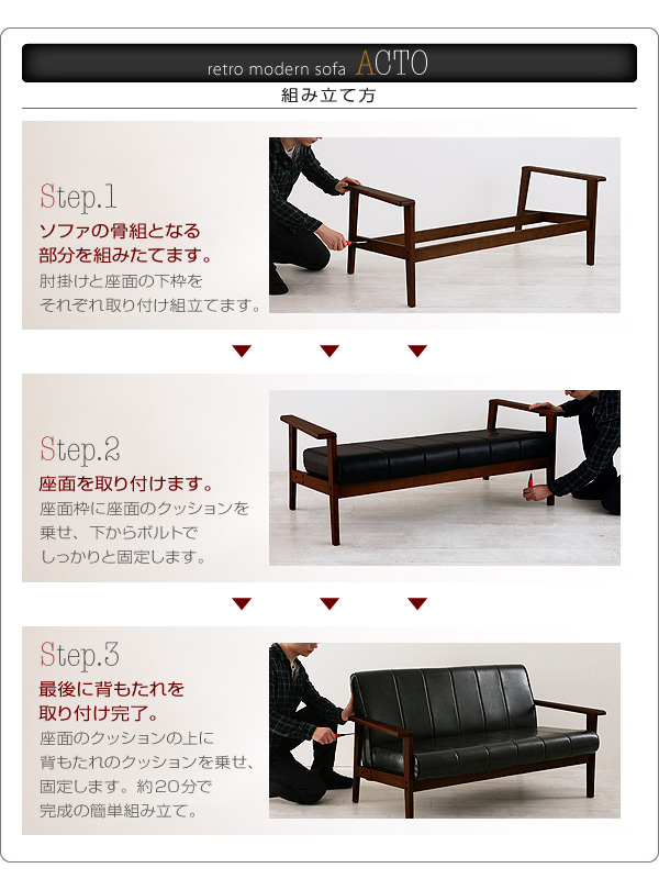 step1:ソファの骨組となる部分を組みたてます。