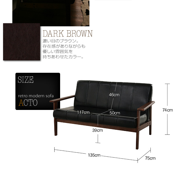 ソファ:幅135(座面幅117)×奥行き75(座面奥行き50)×高さ74(座面高39)cm