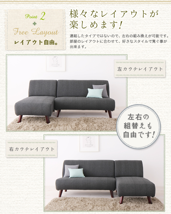 部屋のレイアウトに合わせて、好きなスタイルで寛ぐ事が出来ます。