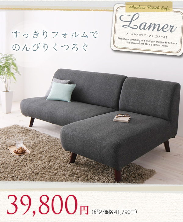 すっきりとしたカタチは、部屋に圧迫感を与えません。どんなインテリアにも馴染む万能デザインです。脚を伸ばせるシェーズロングタイプなので、寛ぎの時間を過ごせます。