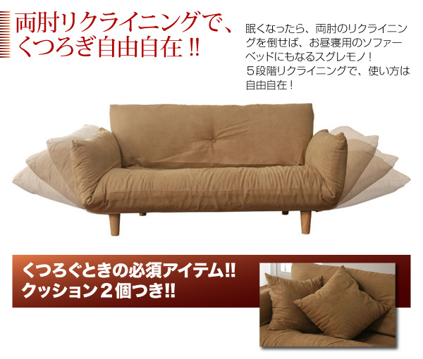■そのままうとうとできる両肘リクライニング式のソファ!