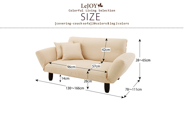 幅130〜166(座面幅96)×奥行き78〜111(座面奥行57)×高さ28〜65(座面高28)cm