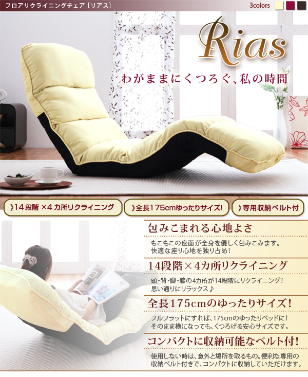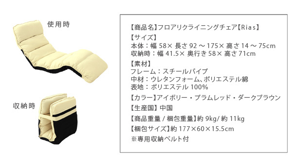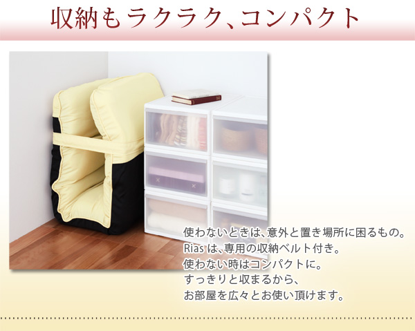 使わないときは、意外と置き場所に困るもの。Riasは、専用の収納ベルト付き。使わない時はコンパクトに。すっきり収まるから、お部屋を広々とお使い頂けます。