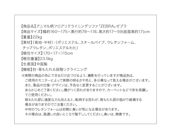 背もたれ部に過度な力も加えると、転倒する恐れが、背もたれ部が曲がり破損する場合がありますのでご注意ください。中材のウレタンフォームは初期に臭いが気になる場合があります。その場合は、風通しの良いところで陰干ししてください。臭いは、無害です。