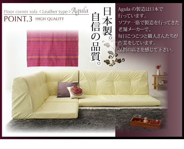 Agulaの製造は日本で行っています。ソファ一筋で製造を行ってきた老舗メーカーで、毎日こつこつと職人さんたちが作業をしています。品質の高さを感じて下さい。