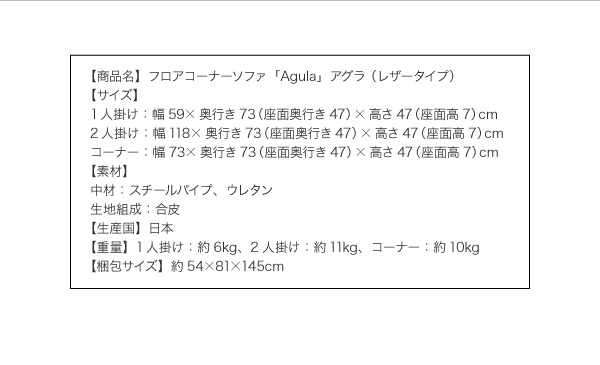 【重量】1人掛け:約6kg、2人掛け:約11kg、コーナー:約10kg