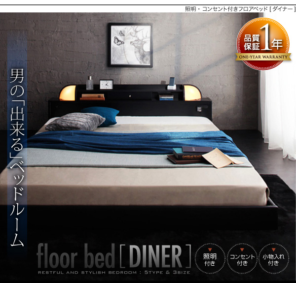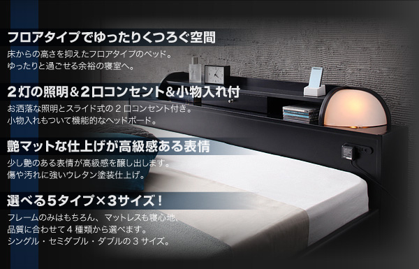 照明・棚付きフロアベッド【ROSSO】ロッソ 【ボンネルコイルマットレス付き】