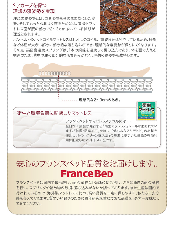世界中から支持されているフランスベッドの高密度スプリングを使用した、マルチラススーパースプリングマットレス。