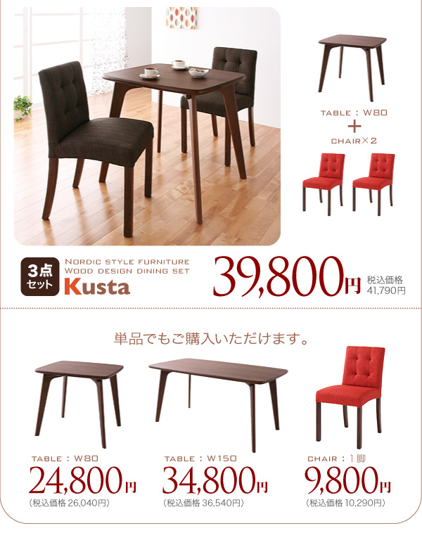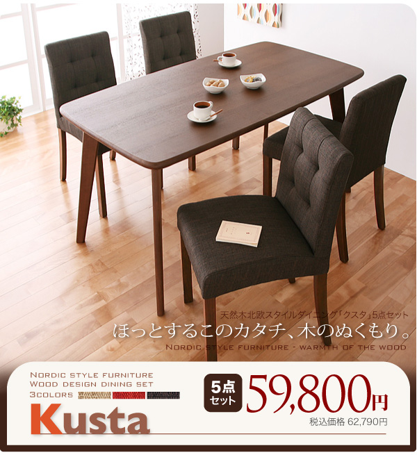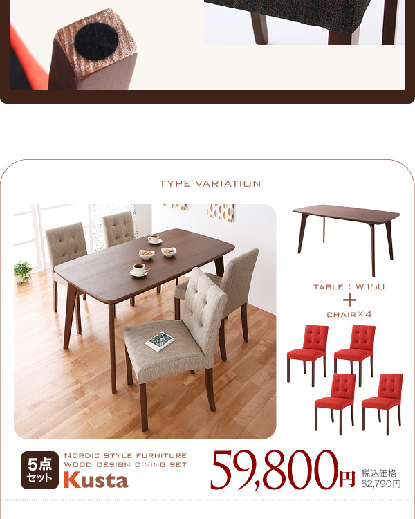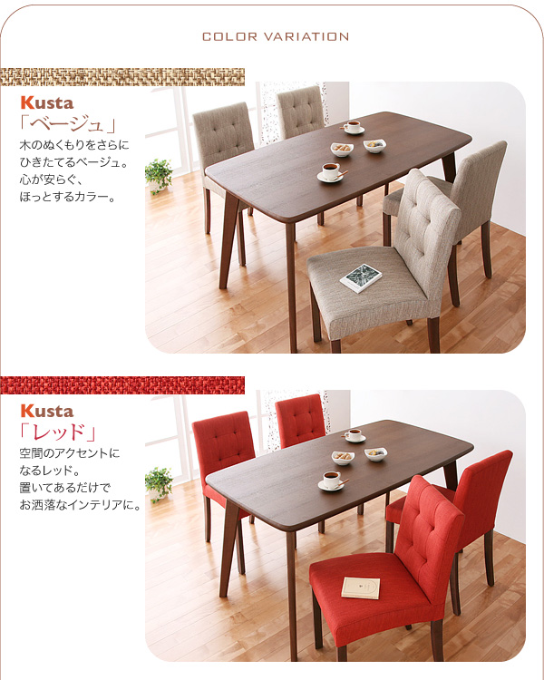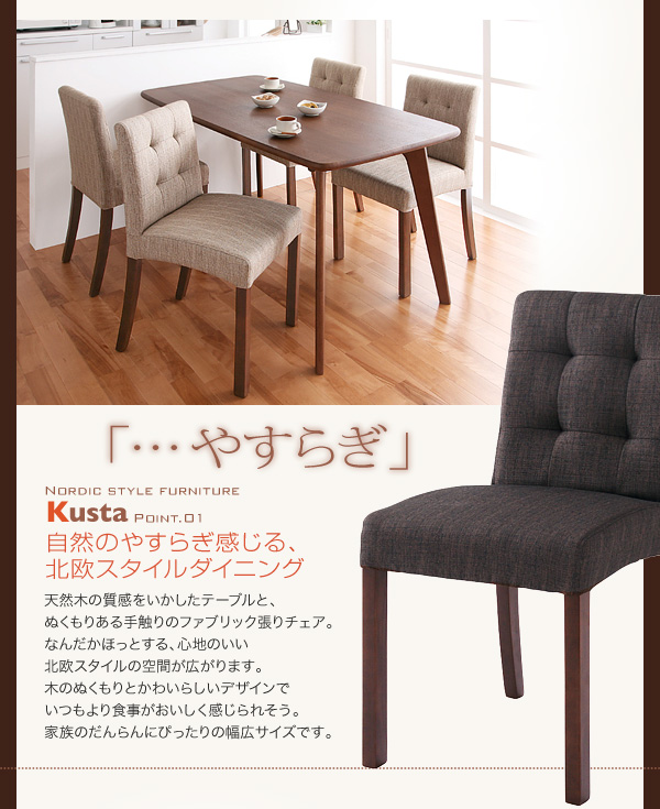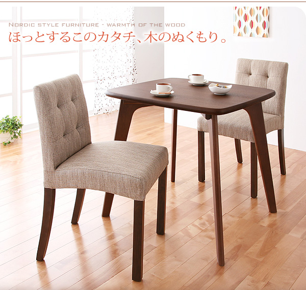 ぬくもりある手触りのファブリック張りチェア。なんだかほっとする、心地のいい北欧スタイルの空間が広がります。木のぬくもりとかわいらしいデザインでいつもより食事がおいしく感じられそう。