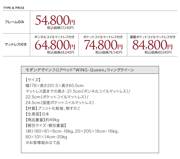 ポケットコイルマットレス付き:74800円(78540円)