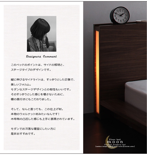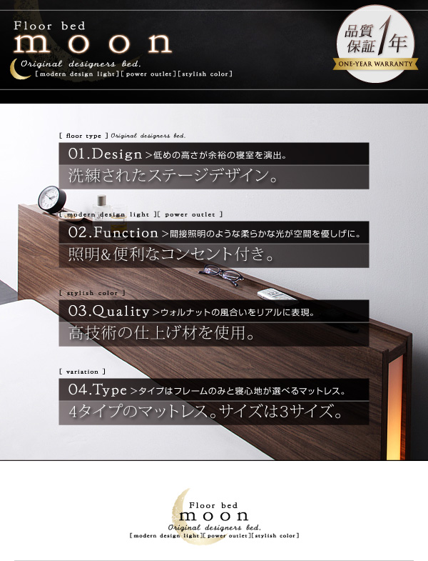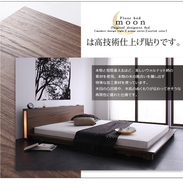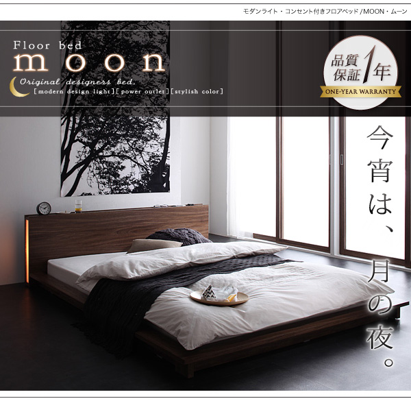 モダンライト・コンセント付きフロアベッド【MOON】ムーン【フレームのみ】