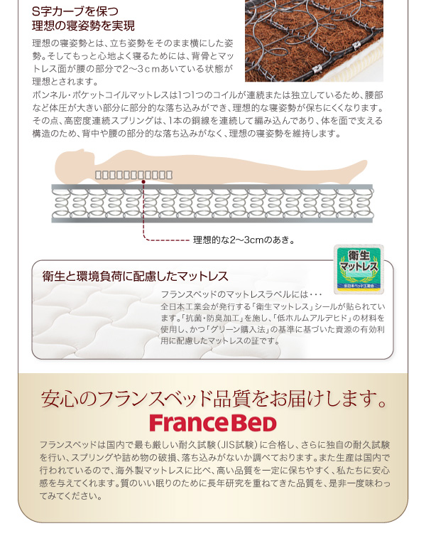世界中から支持されているフランスベッドの高密度スプリングを使用した、マルチラススーパースプリングマットレス。
