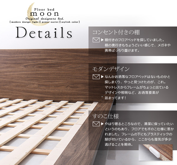 • モダンライト・コンセント付きフロアベッド【MOON】ムーン【フレームのみ】