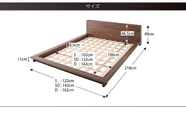 マットレス面までの高さ:18.5cm(ボンネルコイルマットレス)/19.5cm(ポケットコイルマットレス)/22.5cm(国産ポケットコイルマットレス)/18.5cm(マルチラススーパースプリングマットレス)
