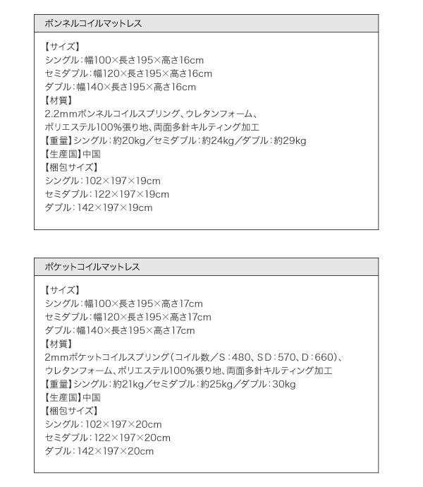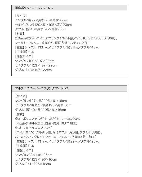 【ボンネルコイルマットレス&ポケットコイルマットレス&国産ポケットコイルマットレス】