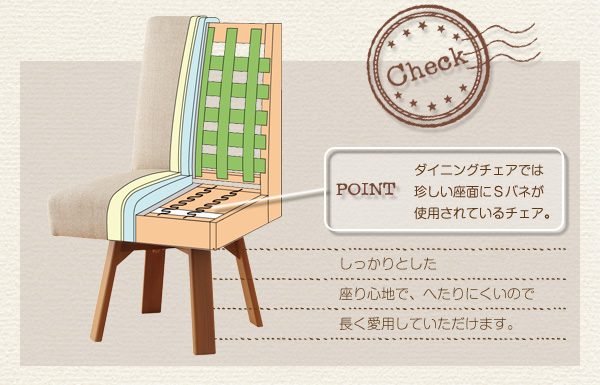 クルーレはダイニングチェアには珍しい座面にSバネが使用されているチェア。