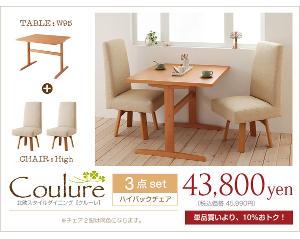 ◇3点セット(テーブルW95+ハイバックチェア×2)