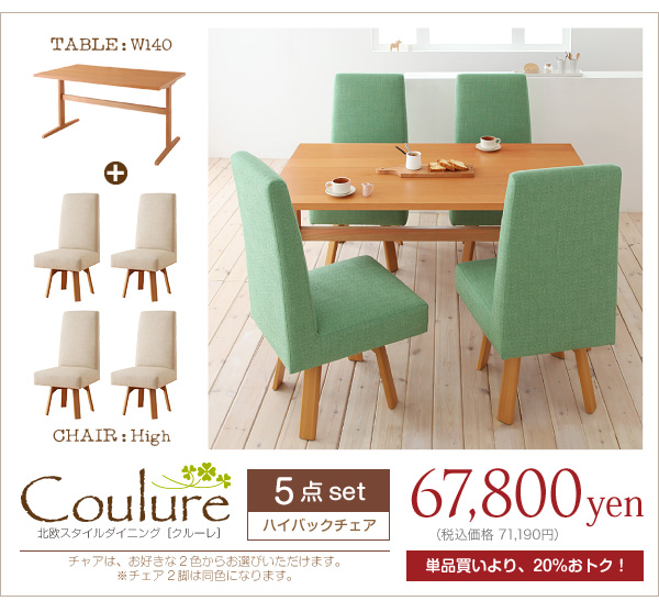 ◇5点セット(テーブルW140+ハイバックチェア×4)