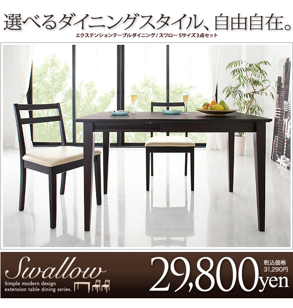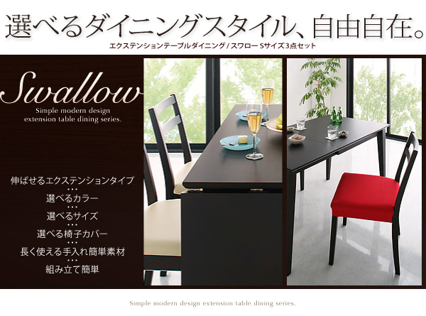【エクステンションテーブルダイニング【Swallow】スワロー Sサイズ 3点セット】