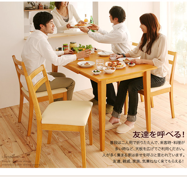 普段は二人用で折りたたんで、来客時・料理が多い時など、天板を広げてご利用ください。人が多く集まる家は幸せを呼ぶと言われています。友達、親戚、家族、気兼ねなく来てもらえる!