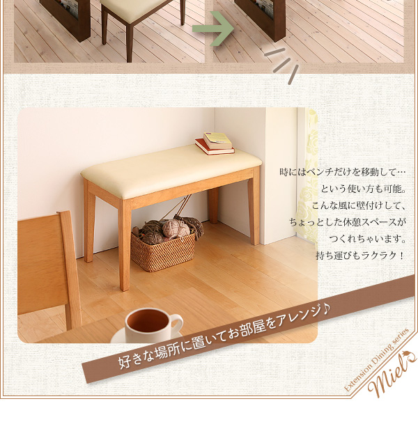 エクステンションテーブルベンチダイニングシリーズ【Miel】ミエル