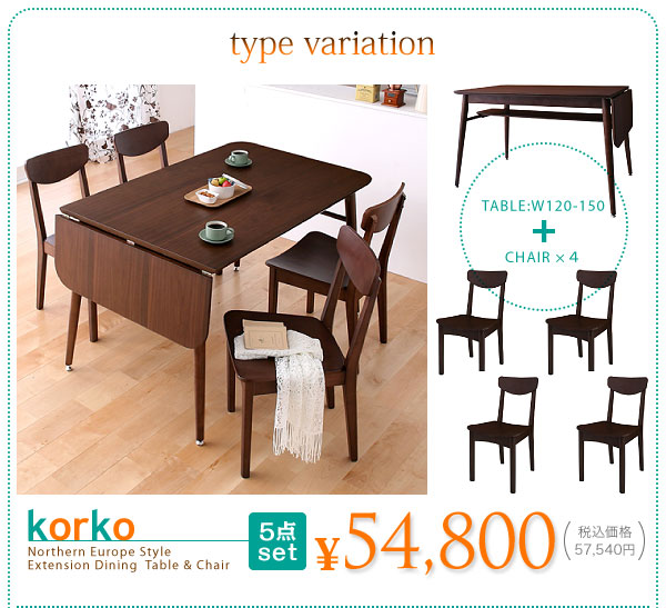 テーブル W120-150、チェア4脚