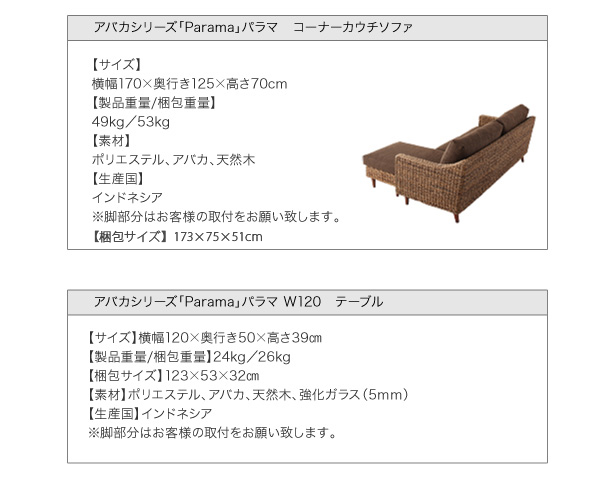 • アバカシリーズ 【Parama】パラマ コーナーカウチ+テーブルセット