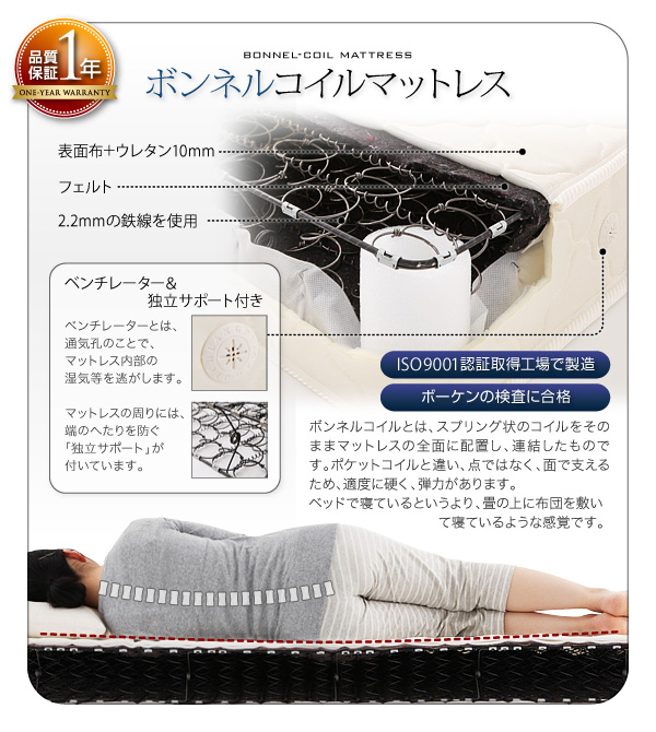 ●ボンネルコイルマットレス●【1年間保証】【ISO9001認証取得工場で製造】【ボーケンの検査に合格】