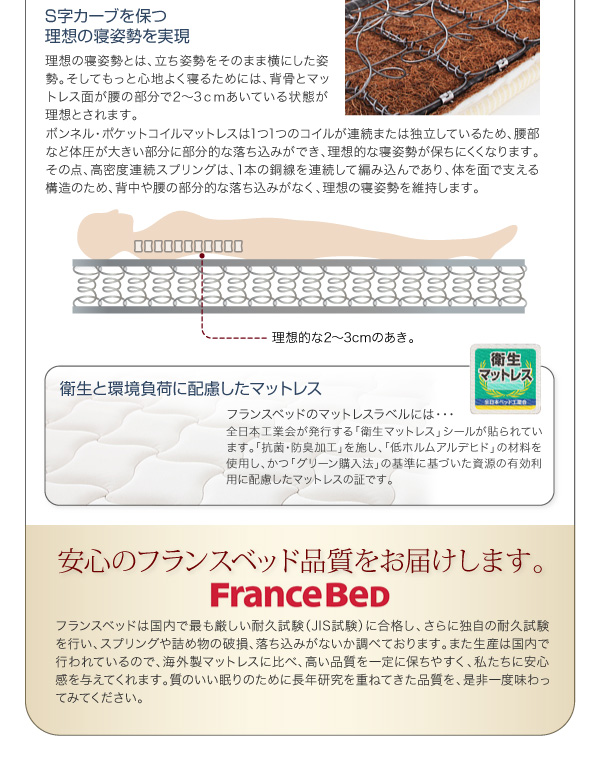 世界中から支持されているフランスベッドの高密度スプリングを使用した、マルチラススーパースプリングマットレス。