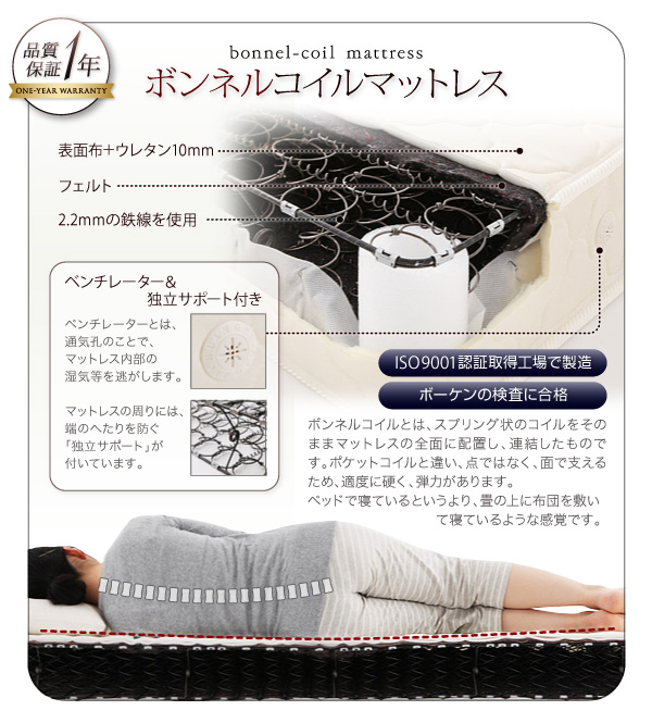 ●ボンネルコイルマットレス●【1年間保証】【ISO9001認証取得工場で製造】【ボーケンの検査に合格】