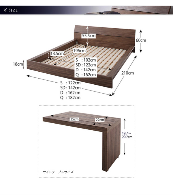 クイーン:幅182×長さ210×高さ60cm