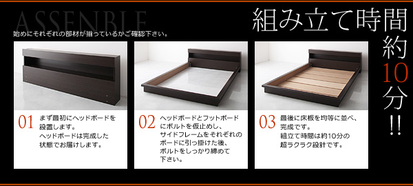 STEP1:まず最初にヘッドボードを設置します。 ヘッドボードは完成した状態でお届けします。