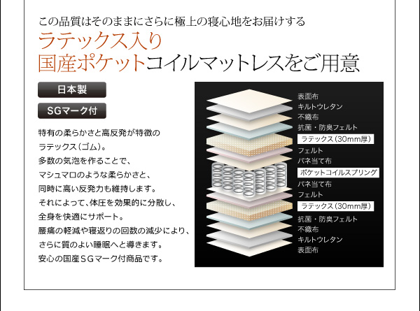 <ラテックス入り国産ポケットコイルマットレス付き>