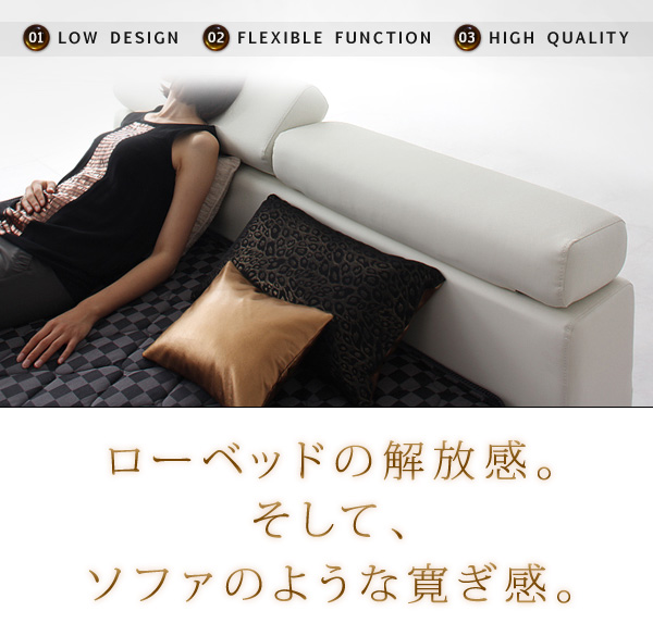 空間的にゆとりができると心理的にもゆとりが生まれ、くつろぎに変わります。その時間をもっと有意義なものにするため、ヘッドボードは可動式。自由な角度で動かせば、ソファのようにくつろぐことができます。