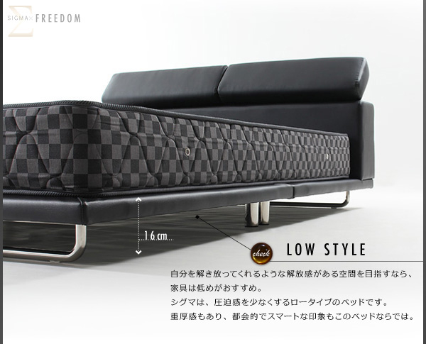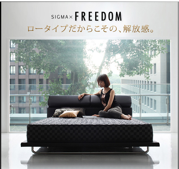 自分を解き放ってくれるような解放感がある空間を目指すなら、家具は低めがおすすめ。シグマは、圧迫感を少なくするロータイプのベッドです。重厚感もあり、都会的でスマートな印象もこのベッドならでは。