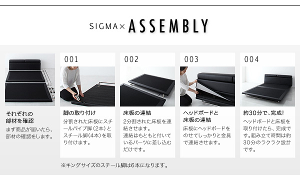 ※キングサイズのスチール脚は6本になります。
