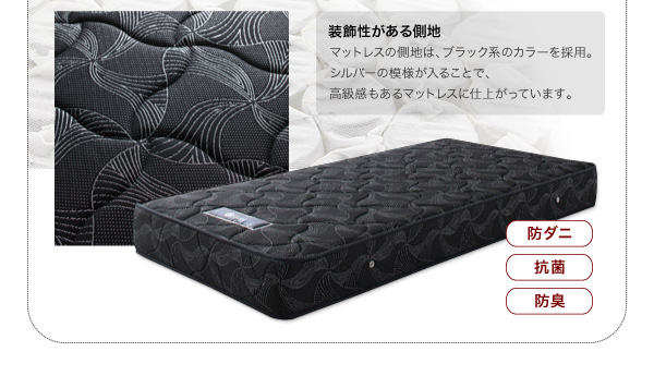 中材:1.9mmポケットコイルスプリング(コイル数/D:720、WD:837、K:480×2)、ウレタン、防ダニ・抗菌防臭綿、不織布、フェルト