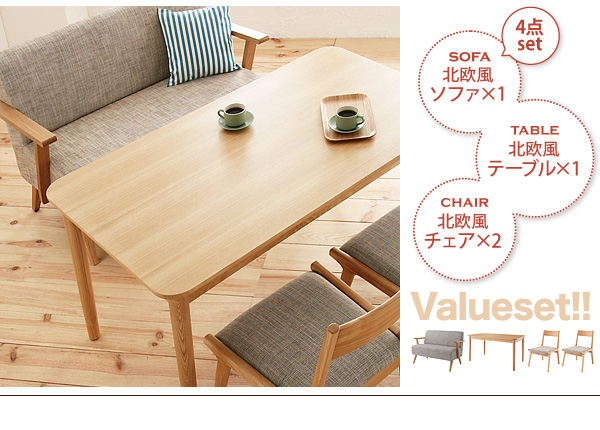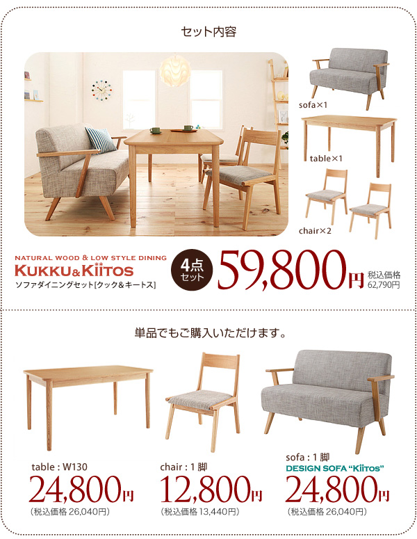 天然木ロースタイルダイニングクックと、天然木北欧風ソファのセットです!