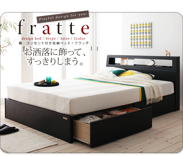 • 棚・コンセント付き収納ベッド【Fratte】フラッテ【国産ポケットコイルマットレス付き】