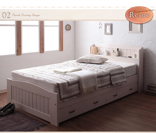 ショート丈天然木カントリー調コンセント付き収納ベッド【Reine】レーヌ【フレームのみ】