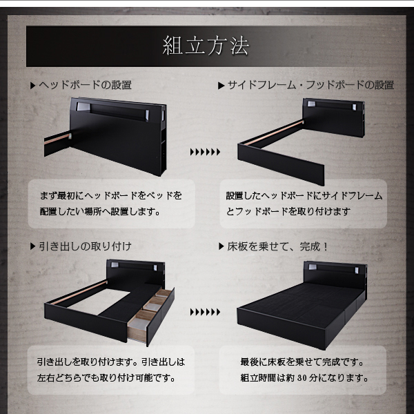 設置したヘッドボードにサイドフレームとフットボードを取り付けます。