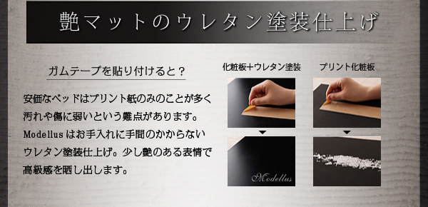 安価なベッドはプリント紙のみのことが多く、汚れや傷に弱いという難点があります。