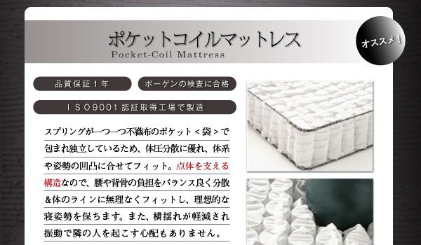 ●ポケットコイルマットレス●【1年間保証】【ISO9001認証取得工場で製造】【ボーケンの検査に合格】