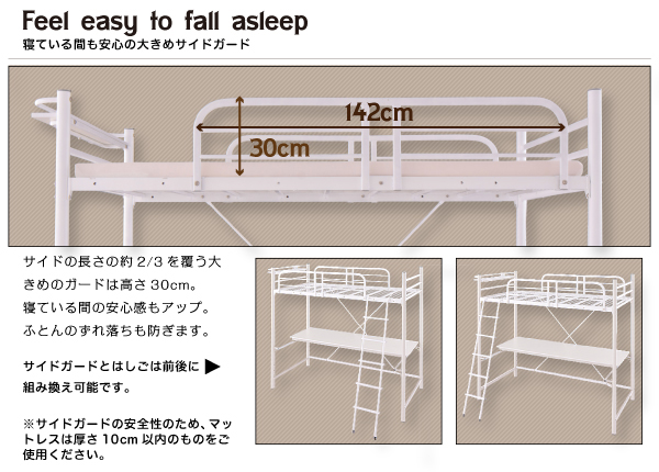 ※サイドガードの安全性のため、マットレスをご使用になる 場合は、高さ10cm以内のものをご使用ください。