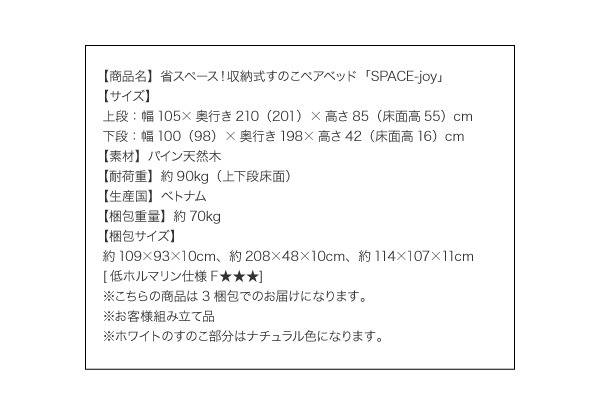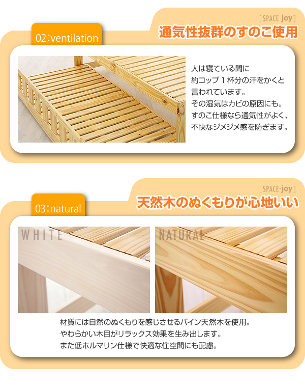 ※床板すのこ部分は、ホワイト・ナチュラルともに無塗装です。