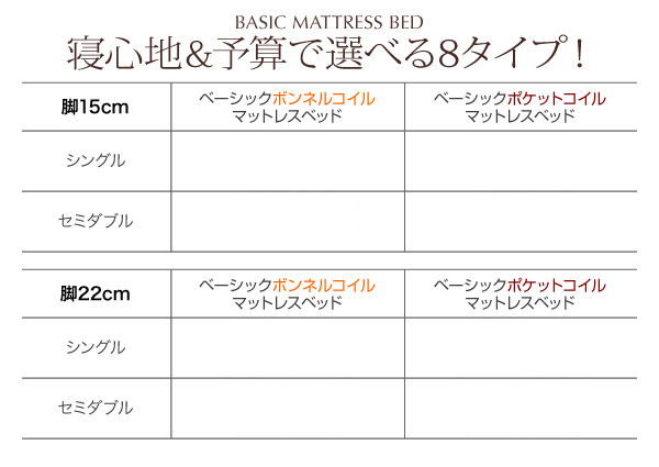 ●ベーシックボンネルコイルマットレスベッド:脚22cm●