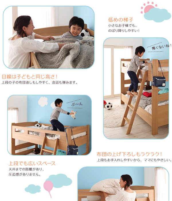 ピクエは高さを低めに設定。ママの布団の上げ下ろしがラクにできるなど、
