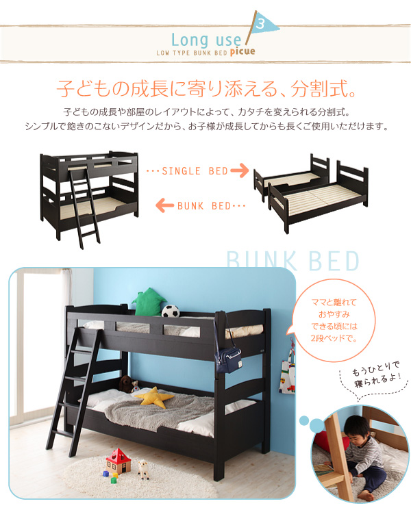 子どもの成長や部屋のレイアウトによって、カタチを変えられる分割式。