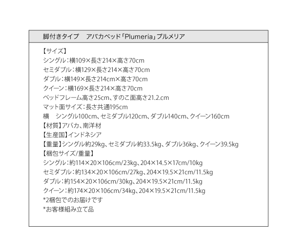 脚付きタイプ アバカベッド Plumeria プルメリア