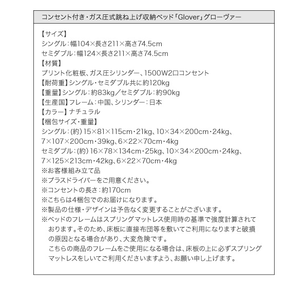 中材:マルチラススプリング(コイル数:シングル810個、セミダブル1026個)、パームパッド、ウレタンフォーム、フェルト、不織布(防虫加工)